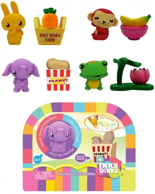 INKY DINKS sunt ștampile drăgălașe pentru copii, cu care cei mici se vor bucura de ore întregi de creație. În pachetul 2 pack găsești două figurine Tipărici și accesoriile lor. Modele precum fluturaș, inimioară sau floricică sunt completate de alte ștampile cu animăluțe și teme diverse. Culoarea Tipăricilor indică cât de rare sunt, făcând din ele o jucărie de colecție distractivă.