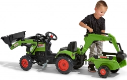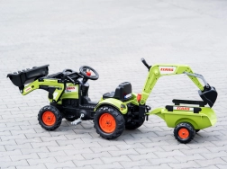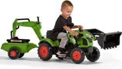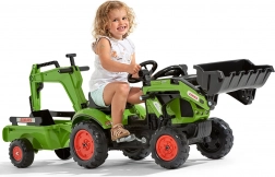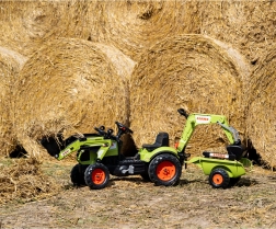 Tractorul este echipat cu transmisie pe lanț pe puntea spate, punte față pivotantă pentru direcție ușoară și remorcă detașabilă pentru transportul jucăriilor sau al „încărcăturii”. Încărcătorul frontal cu cupă mobilă permite încărcarea nisipului, fânului și a mărunțișurilor din grădină – partenerul perfect pentru aventuri în aer liber.