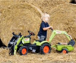 Faceți-i o bucurie micului tractorist cu tractorul cu pedale CLAAS ARION cu remorcă, cupă și încărcător frontal. Detaliile realiste, claxonul din volan și culorile oficiale CLAAS stimulează imaginația și orele îndelungate de joacă. Construcția robustă din plastic de calitate și șasiul stabil asigură o plimbare sigură de la 2 ani.
