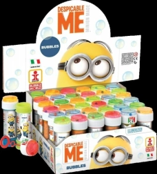 Descoperă distracția simplă și plină de bucurie cu bulele de săpun cu îndrăgitul motiv Minioni. Este suficient să înmoi inelul în soluție și să sufli – vei vedea care bulă va fi cea mai mare! Datorită ambalajului compact, bulele de săpun sunt ideale pentru plimbări, petreceri și vacanțe.