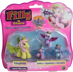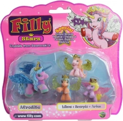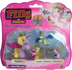 Filly Stars aduce o doză de fantezie în orice cameră de copil. Setul 1+3 conține un ponei mai mare și trei mânji mici în culori vii. Datorită aripilor strălucitoare, coroanelor aurii și coarnelor magice, copiii vor îndrăgi poveștile de basm și jocul creativ.