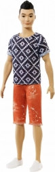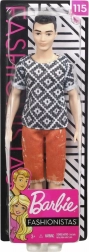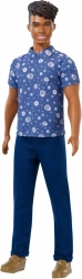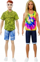 Păpușa Ken este îmbrăcată în tendințele actuale ale modei și include combinații vestimentare variate și colorate.