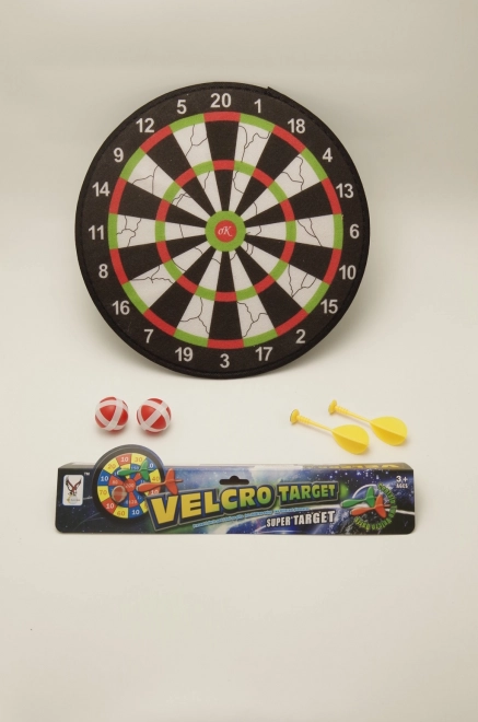 Ținta este echipată cu bandă velcro, pe care se prind săgețile și mingile, asigurând o siguranță completă în timpul jocului.