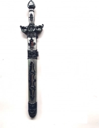 Prezentăm o sabie de cavaler de calitate, care nu trebuie să lipsească din echipamentul niciunui mic cavaler. Designul durabil și detaliat o face un accesoriu excelent pentru jocurile de rol și costumele istorice. Poate servi și ca obiect de colecție unic, datorită calității sale meșteșugărești și valorii estetice.