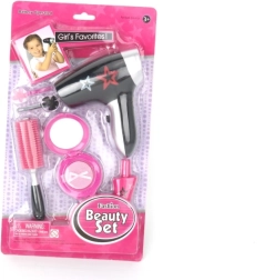 Acest set cosmetic pentru copii cu uscător va încânta toate micile cochete. Combină accesorii îndrăgite de coafură și cosmetice, astfel încât copiii pot îngriji părul, să se „machieze” și să-și creeze propriile ritualuri de frumusețe. Datorită pieselor din plastic ușoare și sigure, setul este ideal pentru joaca zilnică.