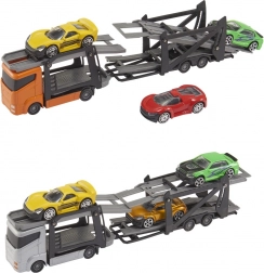 Fiecare camion conține trei mașinuțe colorate, care aduc varietate și atractivitate jocului de copii.