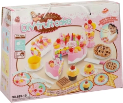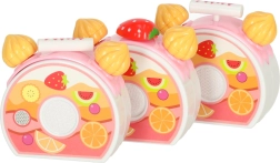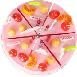 Tortul este format din 6 felii unite cu scai. Copiii îl pot „tăia” în siguranță cu cuțitul din plastic și îl pot servi pe farfurii.