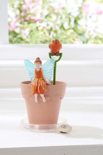 Figurina fermecătoare a zânei cu aripi albastre și prietenul ei, păsărelul Robin, oferă ghiveciului un aspect de basm și înveselește camera copiilor.