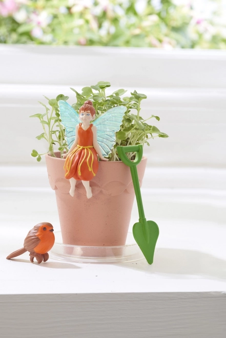 - Figurină zână Hope, figurină păsărel Robin, ghiveci, farfurioară pentru ghiveci, lopățică, plic cu semințe, instrucțiuni