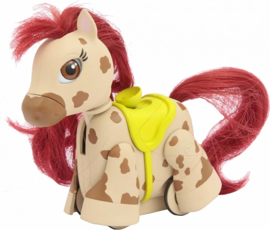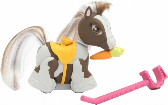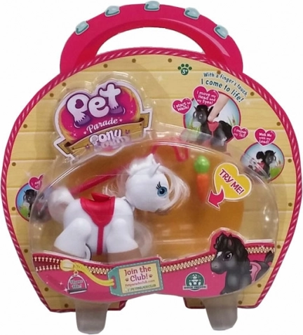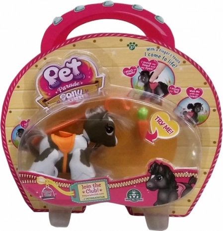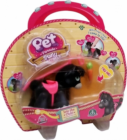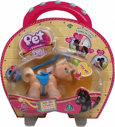 Poneii din gama Pet Parade sunt ca și cum ar fi vii. Privește cum poneiul tău prinde viață la atingerea ta și își mișcă drăgălaș capul, coada și piciorușele. Atașează lesa de boticul lui și pornește la plimbare – urmărește cum își mișcă haios picioarele și clipeste din ochi.