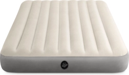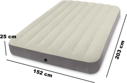 Salteaua gonflabilă dublă INTEX, cu dimensiunile 203 × 152 × 25 cm, este ideală pentru acasă și camping. Are o suprafață din velur plăcută, supapă Boston rapidă pentru umflare și dezumflare ușoare și tehnologie internă Dura-Beam Fiber pentru o susținere mai bună a corpului. Include petic de reparare.