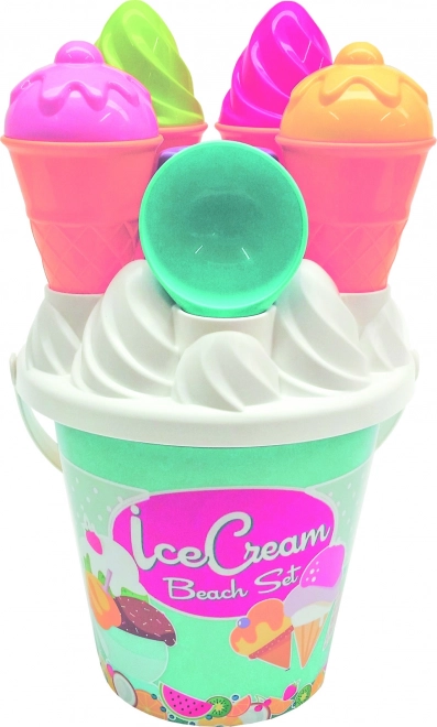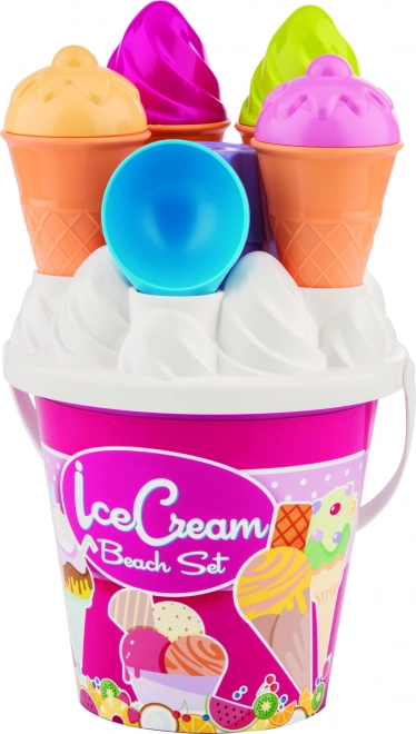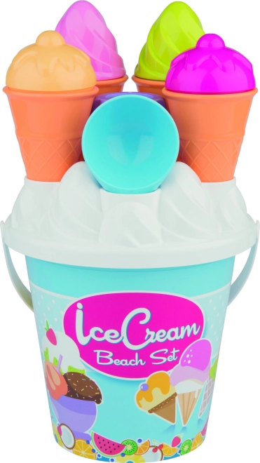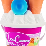 Setul colorat cu motive de înghețată aduce bucurie și distracție în fiecare zi petrecută de copii pe plajă.