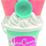 Faceți cunoștință cu acest set colorat pentru nisip cu motiv de înghețată, care aduce bucurie copiilor și le stimulează jocul creativ. Ideal pentru joacă pe plajă sau în parc, setul este realizat din plastic de calitate și conține: