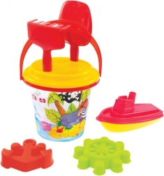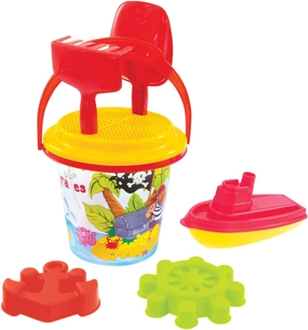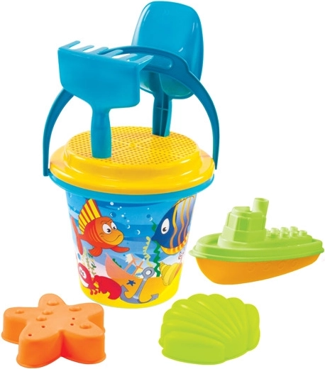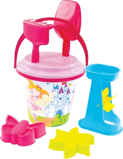 Setul este fabricat în UE din plastic rezistent și sigur, care face față jocului în apă și în nisip. Construcția ușoară și toarta găletușei facilitează transportul, iar diversele teme pentru copii (zâne, dinozauri, pirați, prințese, peștișori) vor încânta orice mic constructor de castele.
