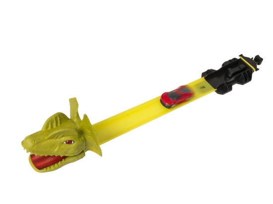 Pistă Teamsterz cu dinozaur și trei mașinuțe.