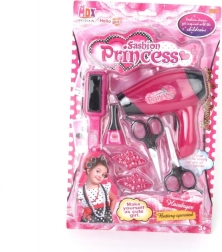 Conținutul setului include instrumente sigure din plastic, precum uscător, ondulator, pieptăn/piaptăn, agrafe și accesorii decorative. Datorită greutății reduse, sunt ușor de manevrat și excelente pentru dezvoltarea motricității fine.