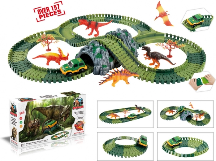 Pistă variabilă cu dinozauri și tunel, 144 piese