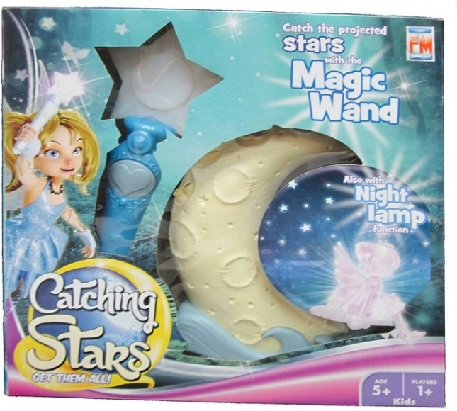 Luna proiectează stele pe perete, creând o iluminare fascinantă pe orice noptieră.
