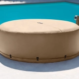 Husă practică pentru căzi cu hidromasaj rotunde cu o capacitate de 4 persoane, care va menține cada în stare perfectă pe tot parcursul anului. Husa minimizează depunerea frunzelor și a prafului, ajută la menținerea temperaturii stabile a apei și economisește energie. Banda de protecție cu cataramă de siguranță asigură fixarea fermă chiar și pe timp de vânt.
