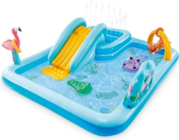Transformă grădina într-o lume acvatică plină de distracție cu centrul de joacă INTEX. Toboganul lat cu pernă moale asigură o aterizare delicată și sigură, în timp ce vadul puțin adânc și piscina mai mare oferă răcorire în zilele fierbinți. Fântâna integrată cu reglarea debitului de apă adaugă un nou nivel de joc.