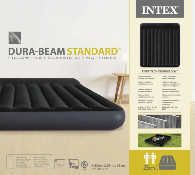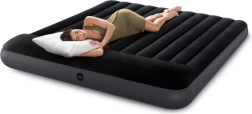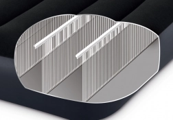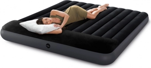 Patul gonflabil INTEX cu dimensiunile 183 × 203 × 25 cm combină stabilitatea și confortul pentru oaspeți, atât acasă, cât și în călătorii. Structura internă Fiber-Tech din mii de fibre polyester rezistente oferă suport uniform corpului, în timp ce suprafața flocată (catifelată) este plăcută la atingere și împiedică alunecarea lenjeriei.
