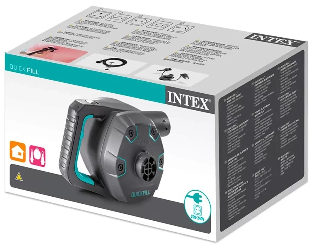 Uită de pomparea îndelungată. Pompa electrică INTEX Quick-Fill poate umfla totul, de la paturi gonflabile la piscine și jucării de plajă, în câteva clipe. Datorită debitului maxim de 1100 l/min obții performanță ridicată și confort în utilizarea de zi cu zi.