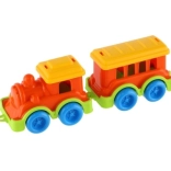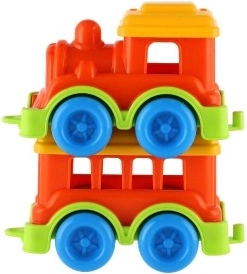 Acest trenulet de plastic este realizat in culori vii care atrag atentia copiilor si sprijina stimularea vizuala.