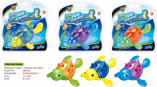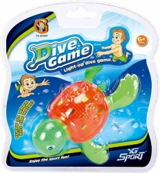 Broasca țestoasă scafandru luminoasă DIVE GAME transformă fiecare baie într-o provocare distractivă. Arunc-o în apă și privește cum se aprinde – efectul luminos îi atrage pe copii la mișcare, scufundare și la jocuri de recuperare a jucăriilor de sub apă. O alegere excelentă pentru zilele de vară la piscină și pentru băile jucăușe de acasă.