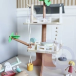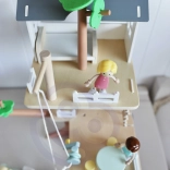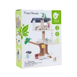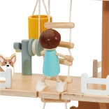 Pachetul conține 31 de elemente, inclusiv 2 figurine de copii, 2 animăluțe și accesorii precum leagăn, leagăn-anvelopă, leagăn de echilibru, pat, masă, scaune și cufăr cu comori. Lemnul natural atent finisat, cu culori delicate, este durabil și plăcut la atingere.