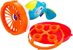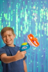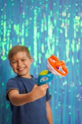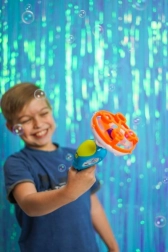 Transformă orice petrecere în grădină într-un spectacol de neuitat cu pistolul de făcut bule FRU BLU 2în1. Setul include lichid profesional 0,5 l și 2 bucle interschimbabile pentru a crea bule mari și mici. Formula europeană specială asigură bule rezistente cu culori intense ale curcubeului.