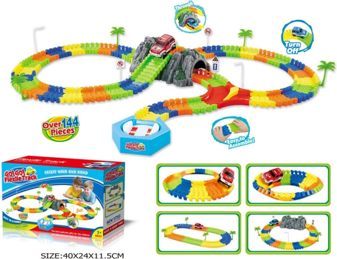 Pistă variabilă cu tunel, care are 144 piese. Setul include o mașinuță, un tunel și alte accesorii. Funcționarea acestui set necesită 2×1,5V baterii AA – nu sunt incluse în pachet. În ofertă este disponibilă o mașinuță roșie sau albastră. Această pistă este foarte ușor de asamblat.