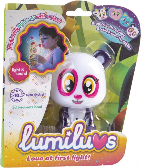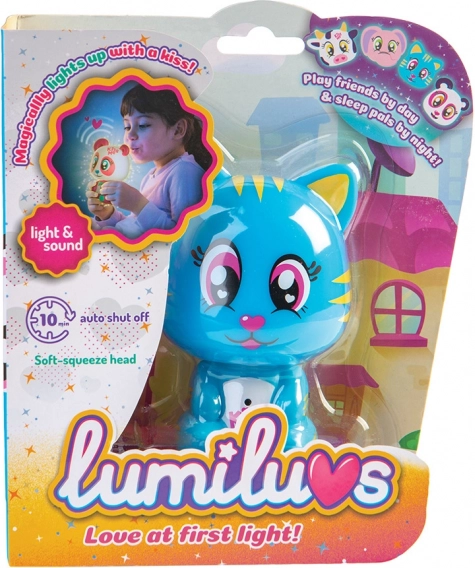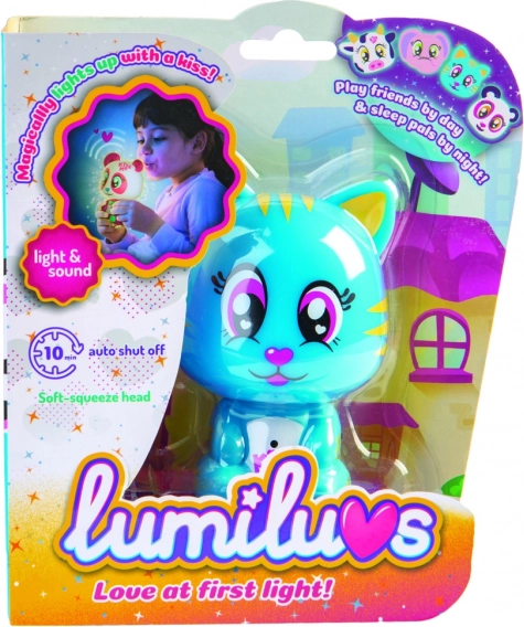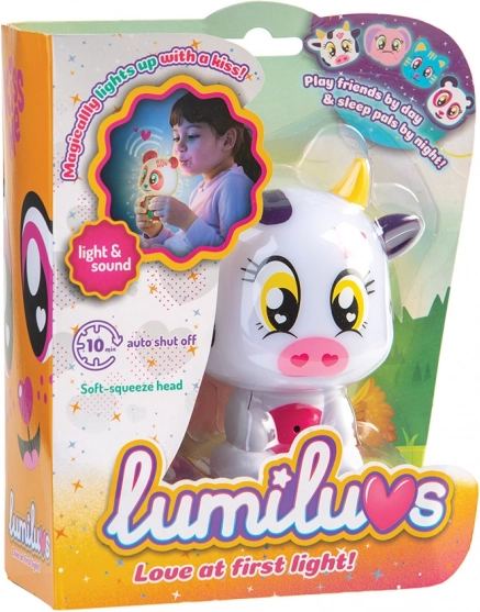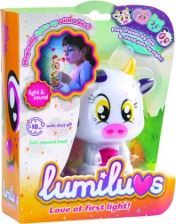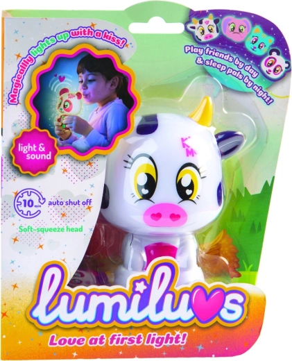 Animăluțul Lumiluvs, când sufli pe burtică și pe guriță, luminează și bolborosește.