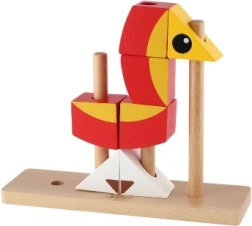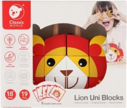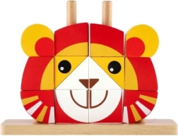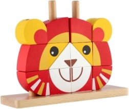 Acest puzzle colorat din lemn în formă de leu oferă copiilor o joacă sigură și cu sens. Piesele în culori vii se înșiră pe tije în baza de lemn, susținând precizia prizei și antrenând gândirea logică. Datorită celor cinci carduri față–verso, copiii pot urma modele sau își pot crea propriile combinații.