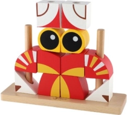 - 19 piese: 14 cuburi colorate, bază din lemn și 4 tije