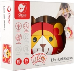 Descoperă joaca creativă cu un puzzle din lemn natural, care îi ajută pe copii de la 18 luni să-și dezvolte motricitatea fină, coordonarea mână–ochi și imaginația. Din 19 piese cu bază și tije, copiii pot asambla o față veselă de leu și alte animăluțe și obiecte după 5 șabloane față–verso – sau după propria imaginație.