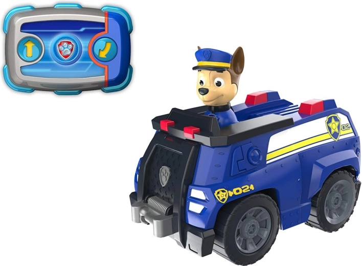 Controlează vehiculul eroului îndrăgit Chase din Patrula Cățelușilor cu ajutorul telecomenzii. Această mașinuță poate fi manevrată chiar și de cei mai mici copii, prin deplasare înainte sau prin mișcare înapoi, caz în care mașinuța și virează.