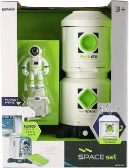 Pe acoperișul stației se află o coardă spațială, datorită căreia cosmonautul poate porni în siguranță într-o „plimbare spațială”. Setul include un loc de parcare pentru planorul spațial și posibilitatea de a „încărca” mașina spațială (din seturi compatibile). Totul este gata pentru joacă imediată – bateriile 2× AA sunt incluse în pachet.