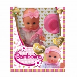 Păpușa Bambolina arată ca un bebeluș adevărat care bea și face pipi. Setul include un oliță roz și un biberon pentru hrănire, care stimulează imaginația copiilor și devin parteneri de joacă.