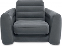 Scaunul gonflabil confortabil și compact oferă un șezut plăcut cu suport pentru băuturi integrat în braț. Ideal pentru relaxare după o zi obositoare.