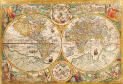 Puzzle-ul prezintă un design complex și estetic frumos al hărții vechi a lumii, ideal pentru iubitorii de cartografie.