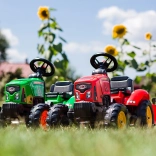 Tractorul robust pentru copii, cu pedale, este fabricat din plastic de înaltă calitate și rezistent și este conceput pentru joacă zilnică. Datorită transmisiei pe lanț pe puntea spate și puntei față pivotante, se manevrează ușor și sprijină dezvoltarea motricității și a echilibrului. Capota rabatabilă cu imitație de motor adaugă detalii realiste pe care copiii le adoră.