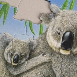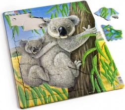 Descoperiți lumea fascinantă a puzzle-urilor Larsen cu tematica de koala! Fiecare piesă are o formă unică, permițând copiilor să-și dezvolte creativitatea și imaginația. Puzzle-urile se montează pe o placă solidă și se depozitează ușor datorită designului de tip placă.