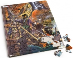 Puzzle-ul LARSEN oferă un mod unic de asamblare cu piese neregulate, care încântă copiii și, în același timp, le dezvoltă creativitatea și abilitățile. Marginea fermă și deschiderile de sub asigură o asamblare și demontare ușoară a pieselor. Tematica de pirați este grafic atrăgătoare și fiecare piesă este originală!