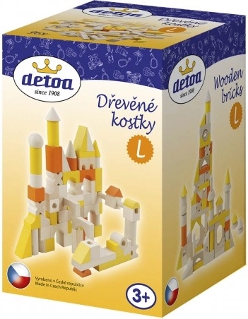 Cuburile de lemn Detoa sunt o alegere excelentă pentru copiii care iubesc să creeze și să construiască. Acest set include forme variate, cum ar fi cuburi clasice, dreptunghiuri, cilindri și bare neobișnuite, piramide și alte forme interesante, inclusiv unele perforate. Datorită culorilor vii și multitudinii de posibilități, aceste piese sunt perfecte pentru dezvoltarea creativității și motricității copiilor.