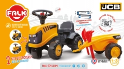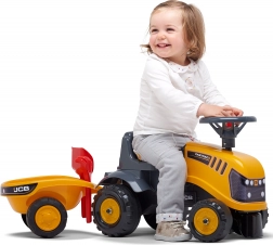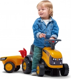 Trotineta fără pedale JCB pentru copii, cu remorcă detașabilă, este primul vehicul ideal pentru micii constructori de la 12 luni. Oferă condus stabil și sigur, calitate superioară a execuției, claxon pe volan și roți din plastic rezistent. Include 2 seturi de autocolante pentru stil propriu și jucării – lopățică și greblă pentru joacă și mai distractivă.