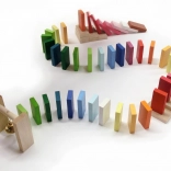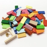 Cu 95 de piese din lemn care pot fi combinate variabil, copiii își dezvoltă creativitatea și motorica fină.