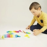 Aduceți acasă distracția nesfârșită cu Pista Domino Detoa cu Clopoțel! Acest set creativ, compus din 95 de piese colorate, este ideal pentru toți micii constructori. Crearea propriilor trasee și urmărirea efectelor căderii domino sprijină la copii răbdarea și gândirea logică.
