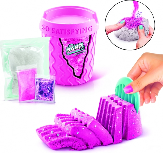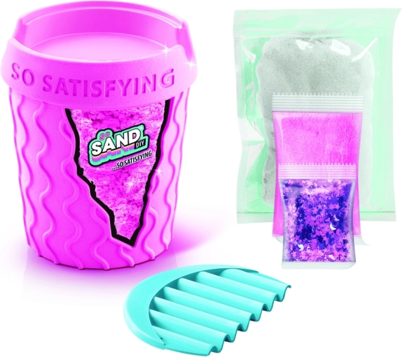 Fiecare set conține tot ce ai nevoie pentru a crea nisipul magic perfect. Amestecă-l cu gelul magic pentru a obține efecte și texturi surprinzătoare. Perfect pentru copii de la 6 ani și asigură că își stimulează creativitatea și motricitatea fină.