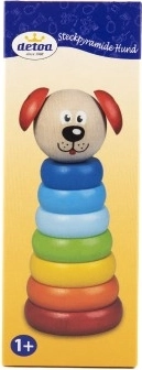 Piramidă Căţel Detoa din bucăţi de lemn sprijină dezvoltarea motricităţii fine şi imaginaţiei la copii de la 1 an. Este fabricată conform standardelor stricte de siguranţă ale UE.