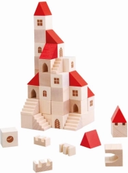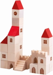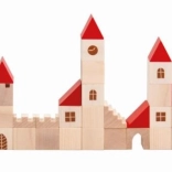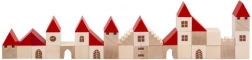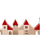 Acest set de construcție din lemn conține 100 de piese de diferite forme și dimensiuni, permițând copiilor să creeze propriul orașel mic. Datorită designului colorat cu acoperișuri roșii și lemn natural, acest set nu este doar frumos, ci și complet funcțional pentru jocul imaginativ. Ajută la dezvoltarea motricității fine și a percepției spațiale la copii.